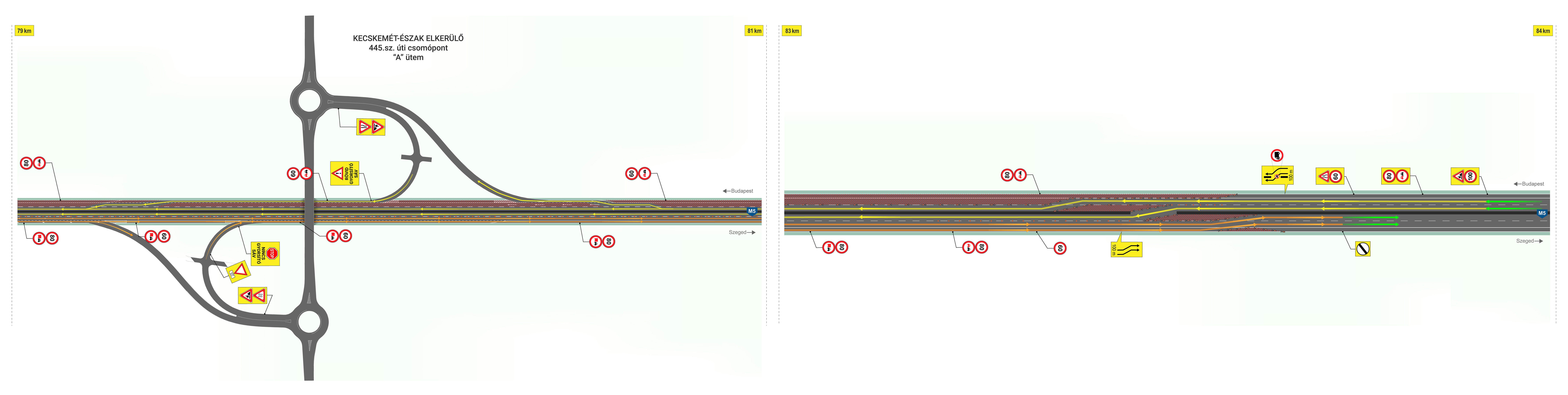 2026. április 27-én az autópálya Szeged felé vezető oldalán a 81-es és a 82-es kilométerszelvények között a forgalmat ideiglenesen mobil forgalomterelés biztosítása mellett az előző sávba terelik.